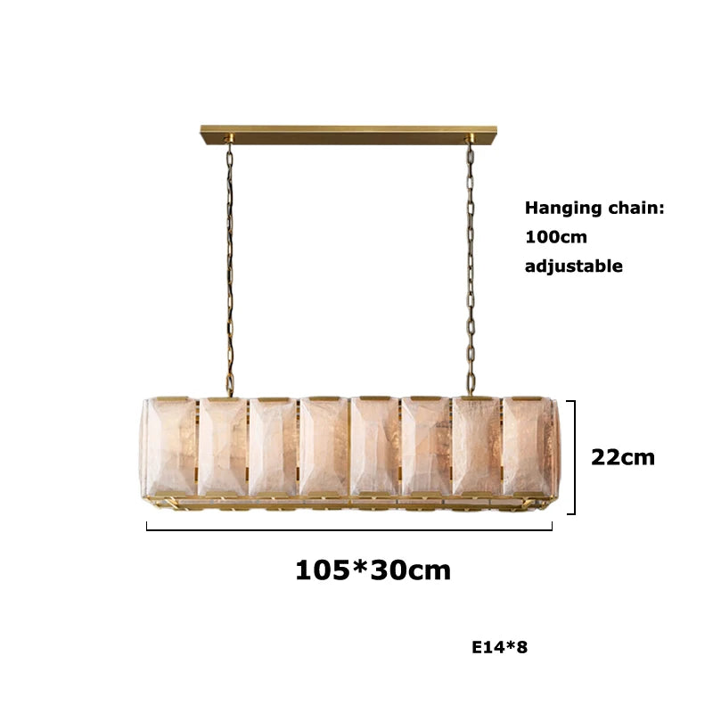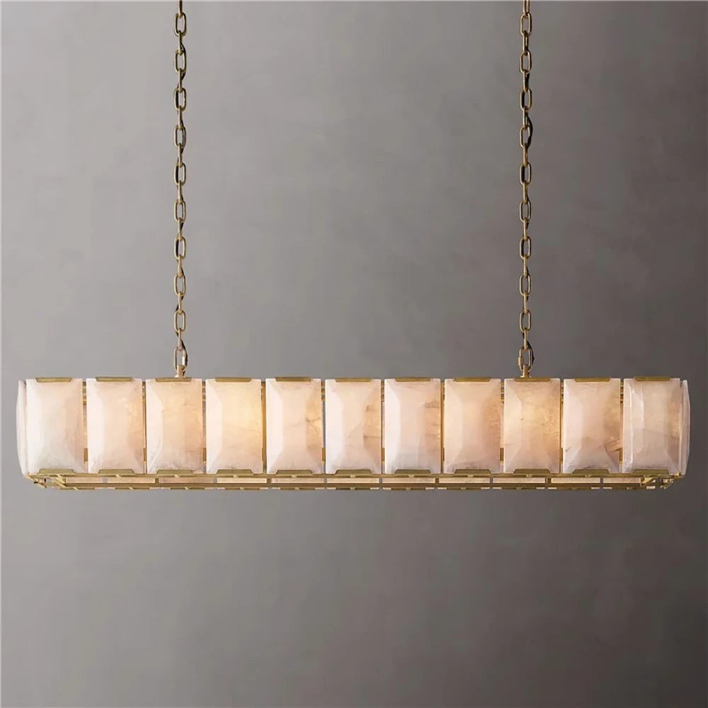 Akolia Harlow Calcite Alabaster Marble Retro American E14 LED Dimmable Rectangular Chandelier