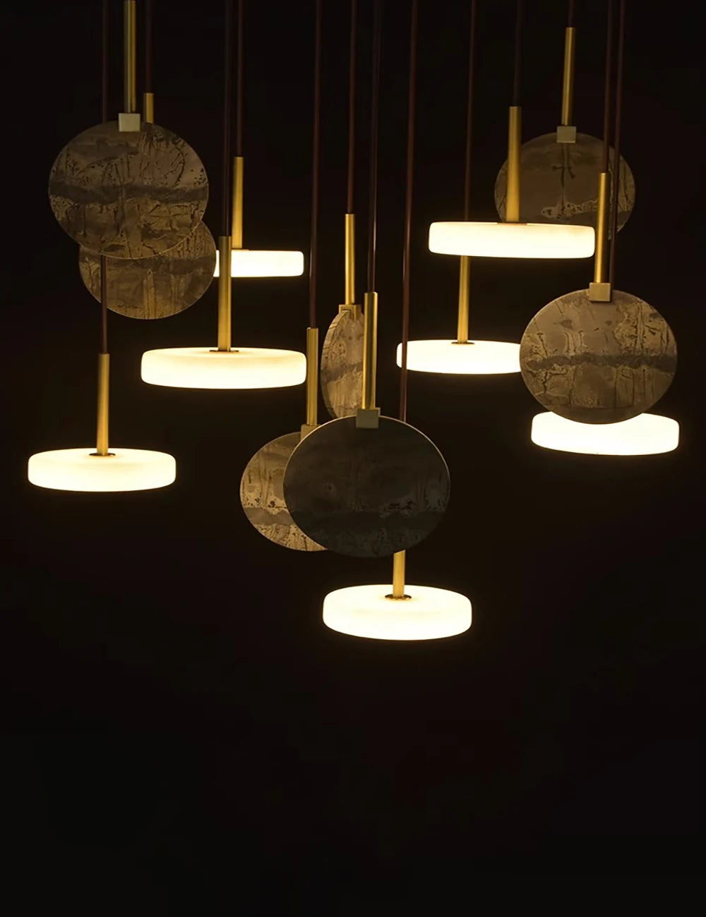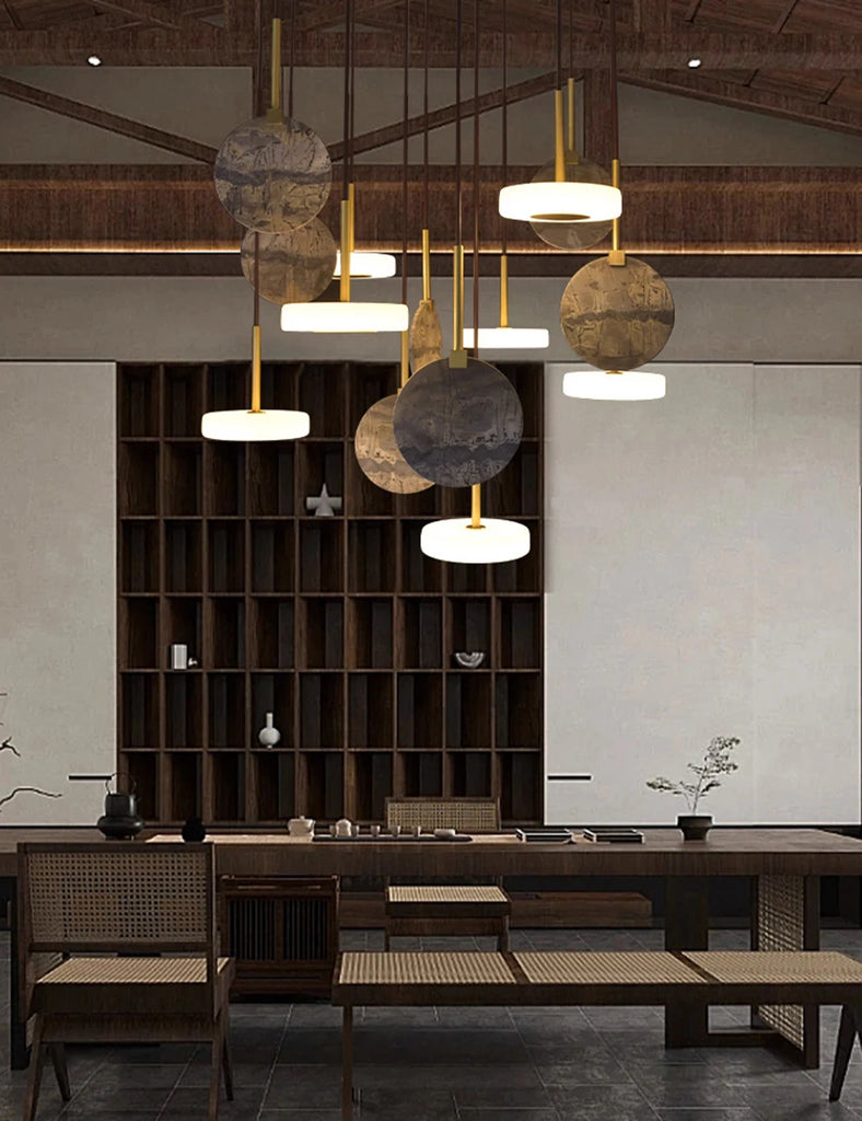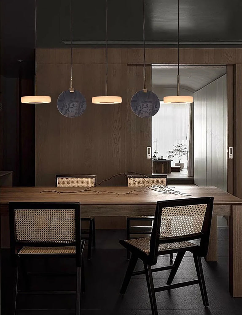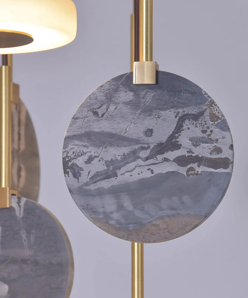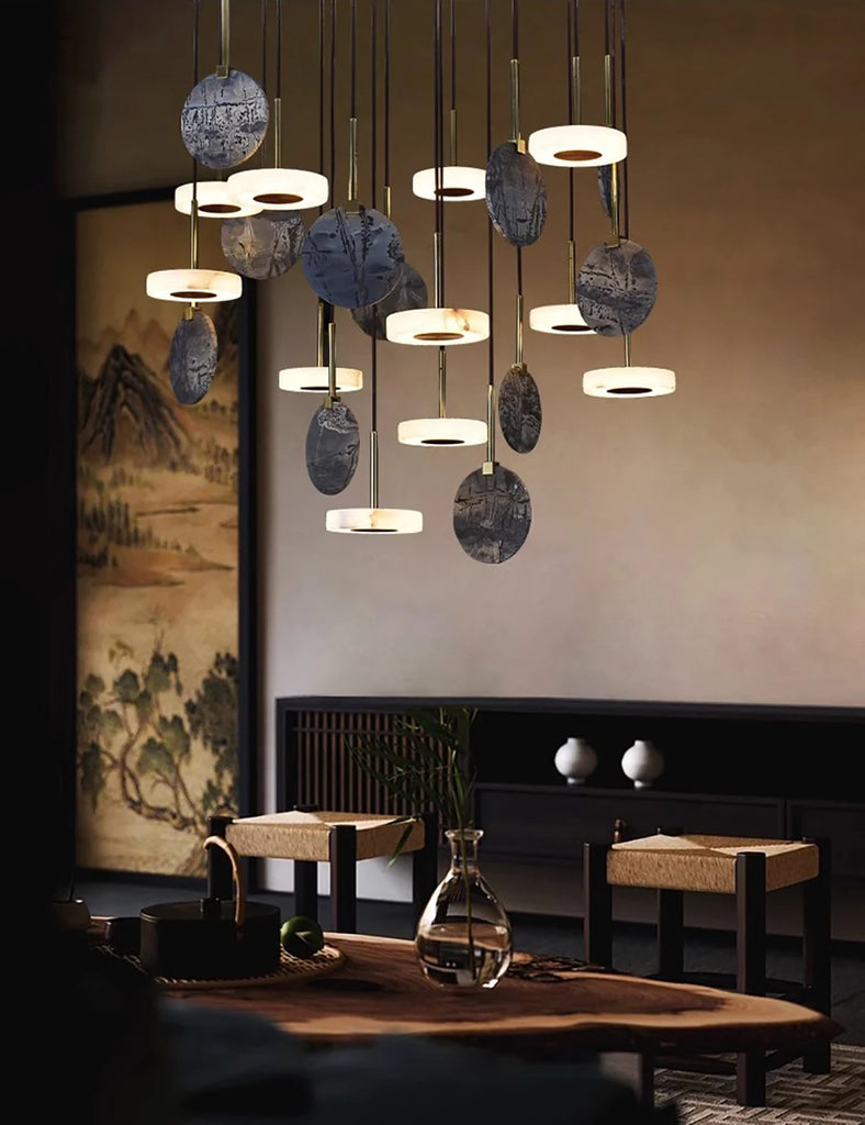 - The Akolia Luréa Marble & Wood Couple LED Chandelier embodies balance and intimacy through contrasting materials—cool marble and warm wood. Each handcrafted element hangs in a calm, rounded composition, casting a soft ambient glow ideal for cozy living rooms, bedrooms, and elegant dining interiors. Its timeless look blends organic texture with modern LED sophistication for natural-luxury décor.