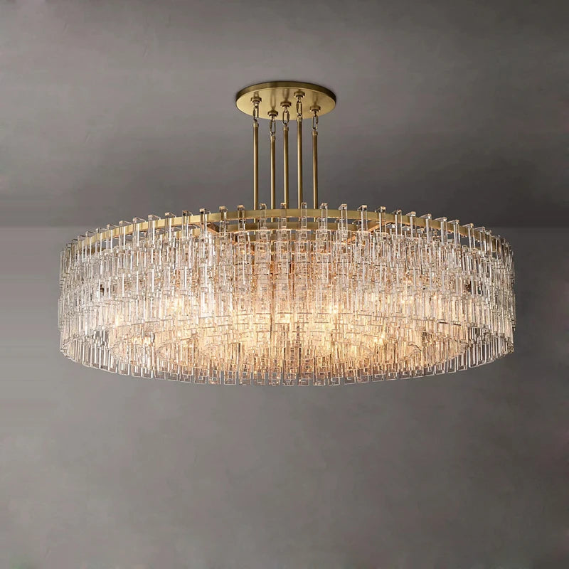 Akolia Aquitaine Round Linear American Classic Crystal Gold/Chrome Chandelier