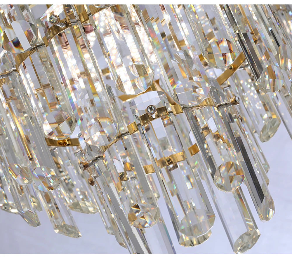 • The Priv Solarae Crystal Dimmable LED Round Chandelier elevates modern interiors with its radiant circular design and premium crystal detailing. Crafted from polished stainless steel and high-transparency crystals, it casts a brilliant yet refined glow perfect for dining rooms, bedrooms, foyers, or contemporary living spaces. With remote-controlled dimmability, adjustable hanging chains, and long-life LED illumination, Solarae blends luxury and practicality — a stunning centerpiece for any modern home or boutique environment.