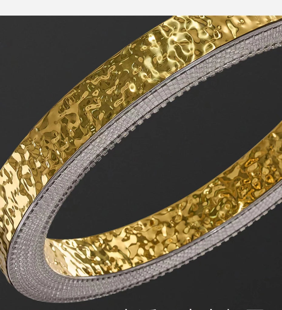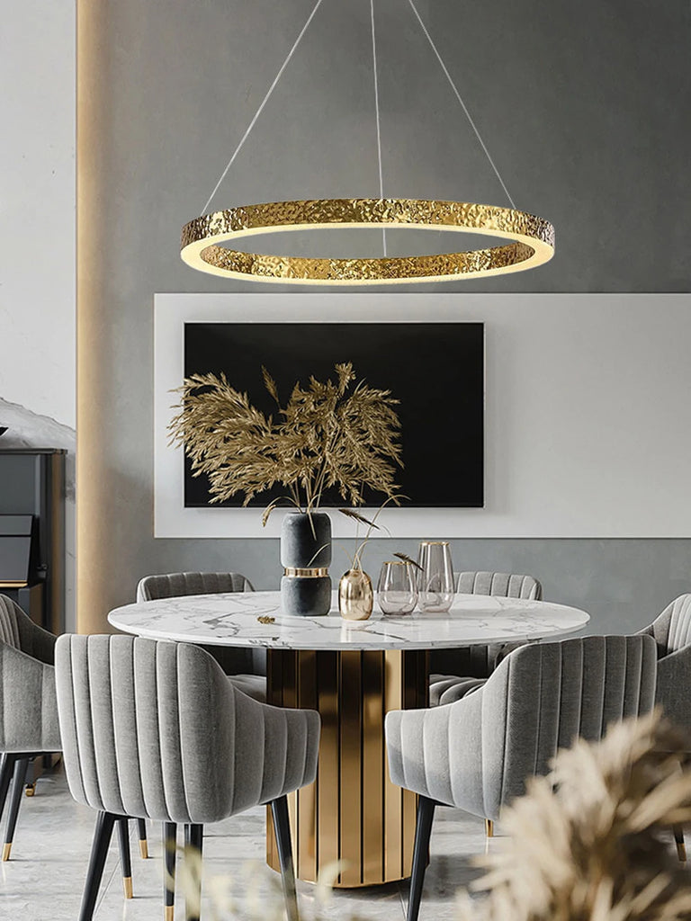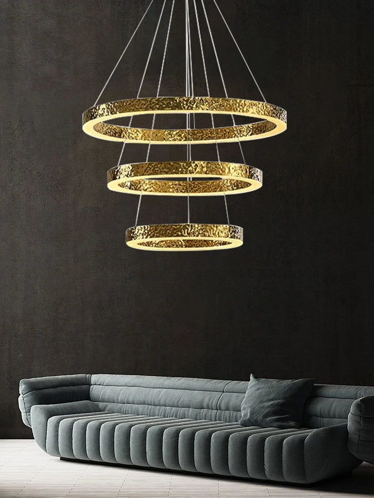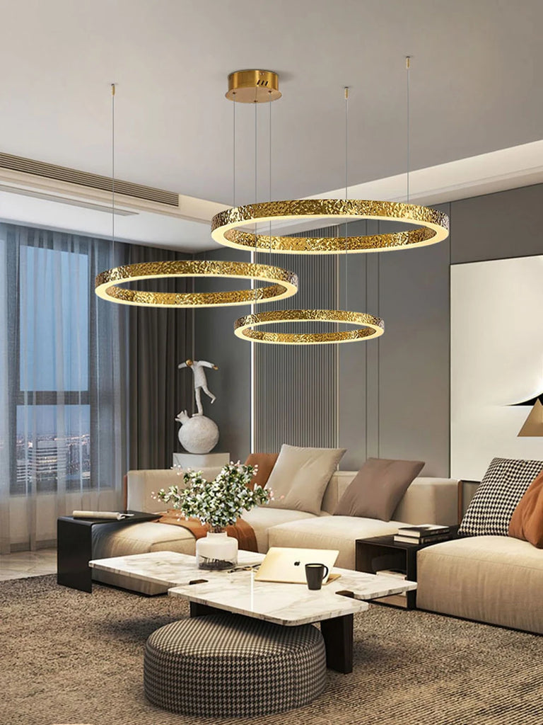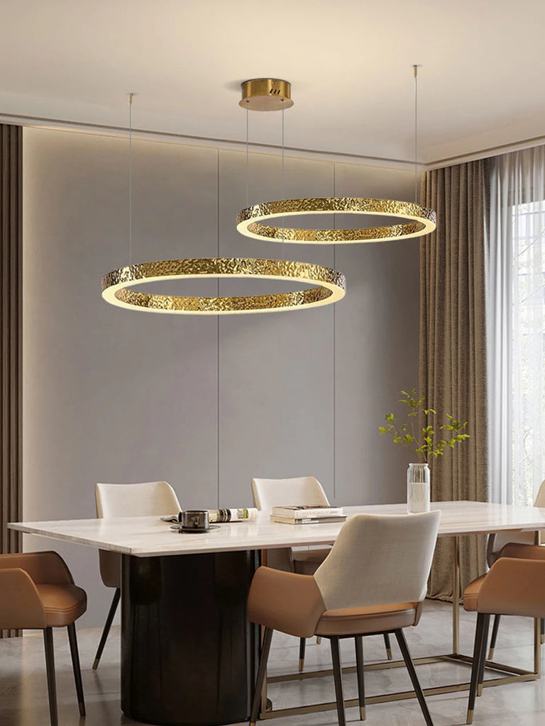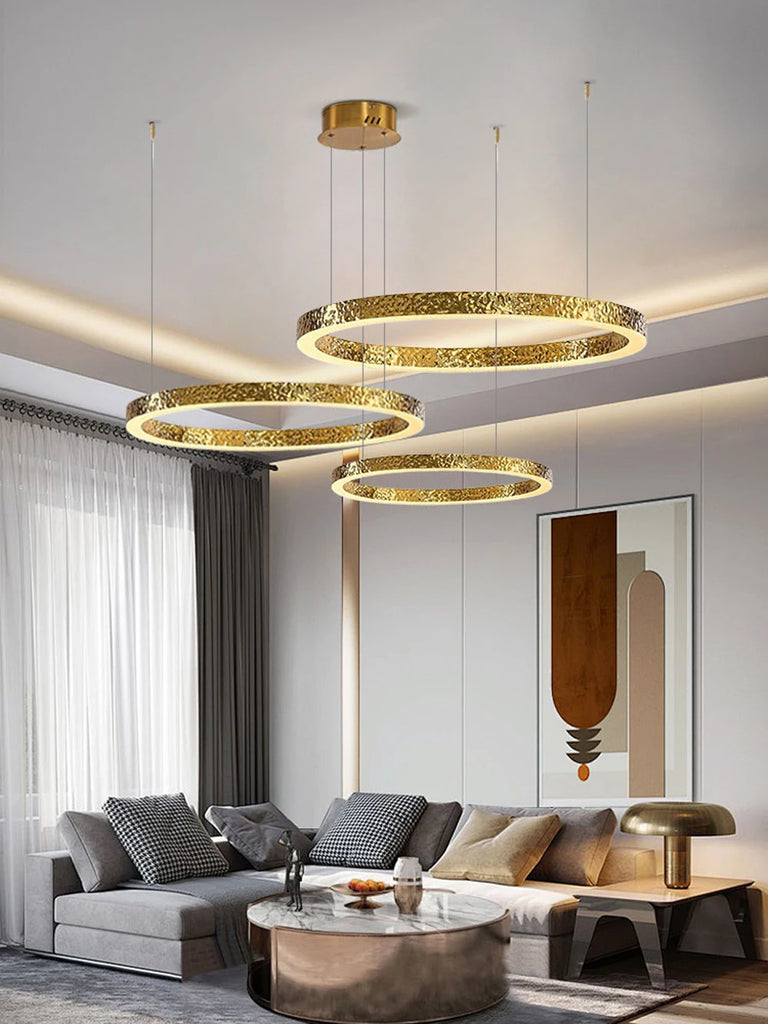 - The WJASON Aurevo Art Deco Copper Crystal Ring Chandelier embodies refined craftsmanship and sculptural elegance. Its hand-finished hammered copper rings encase shimmering crystals that radiate warm, luminous light, creating a captivating visual centerpiece from every angle. Suspended by adjustable cables, Aurevo enhances both modern and classic interiors—perfect for living rooms, dining areas, foyers, staircases, or double-height ceilings. The design balances luxury and artistry, transforming open spaces into glowing architectural statements.