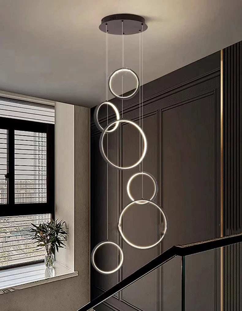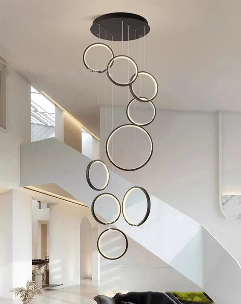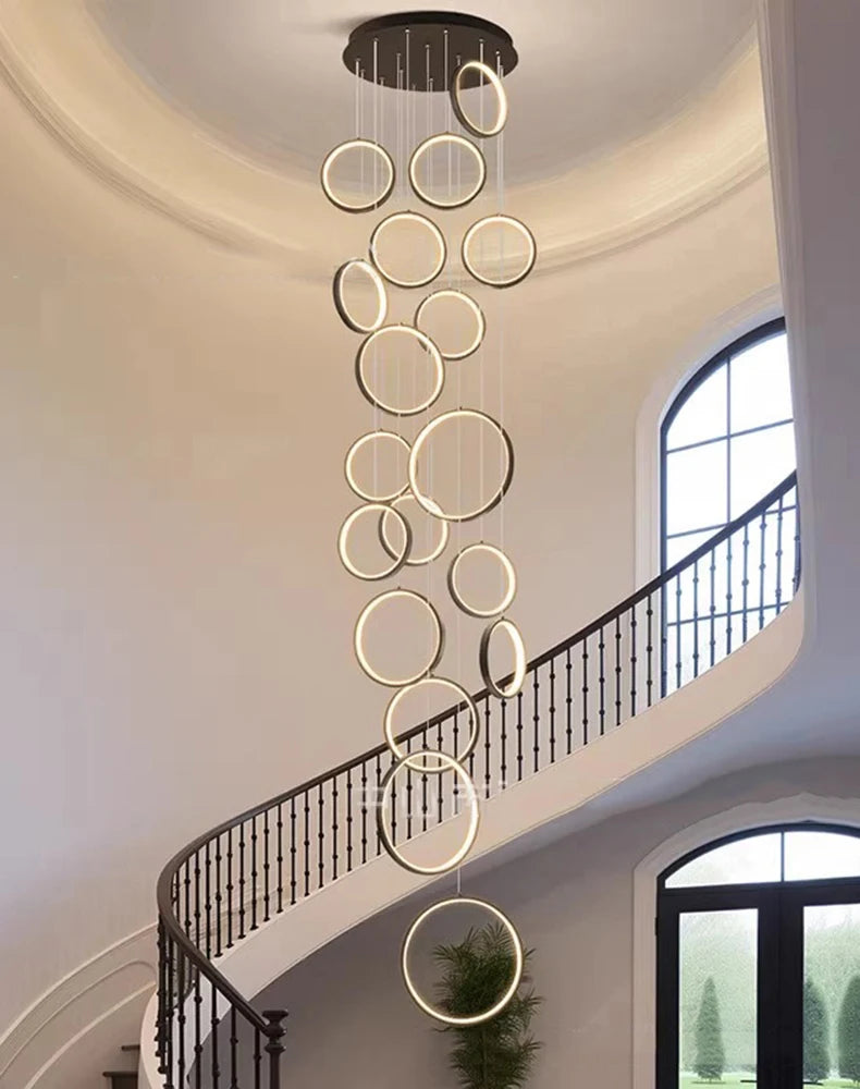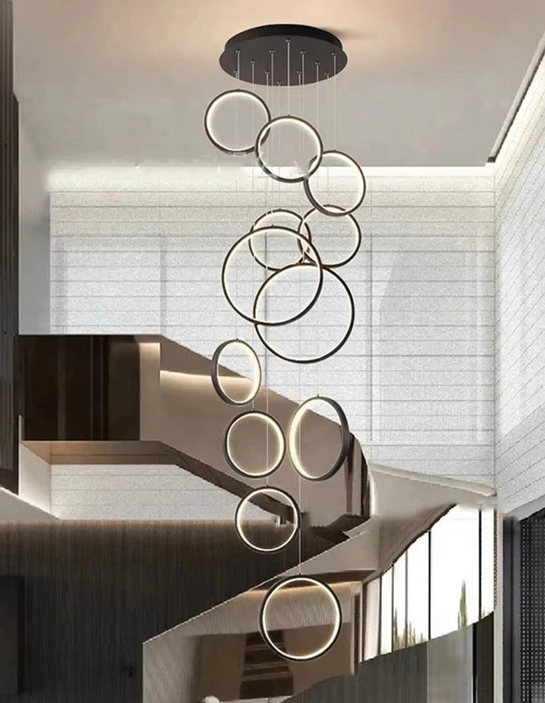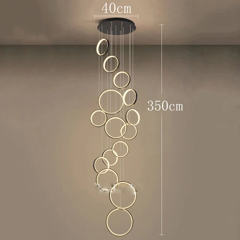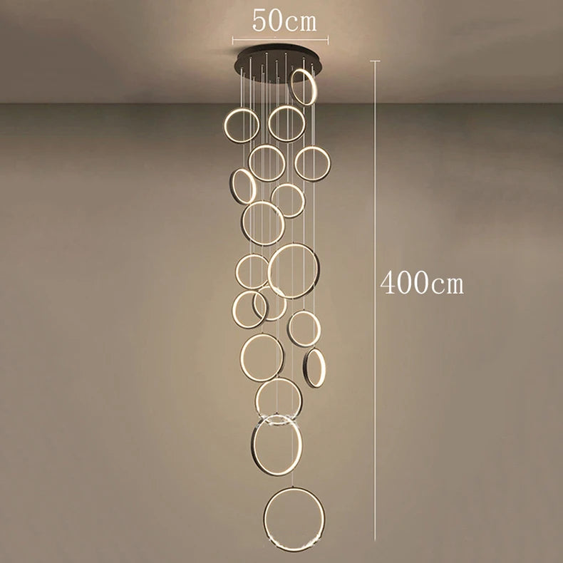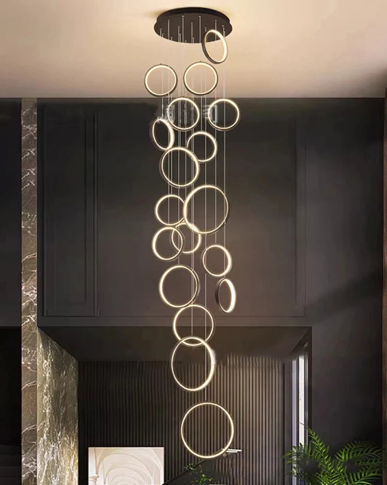 • ✔ Cascading LED ring design for modern architectural interiors