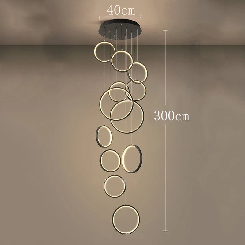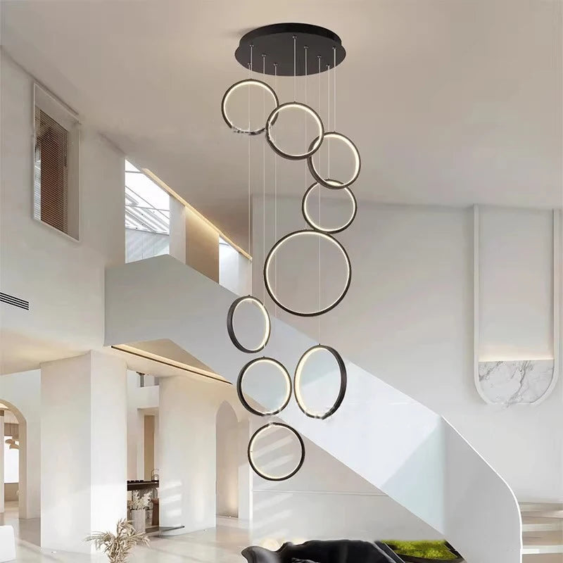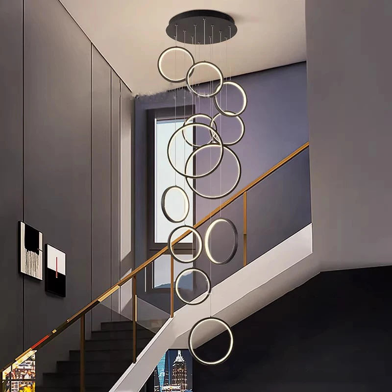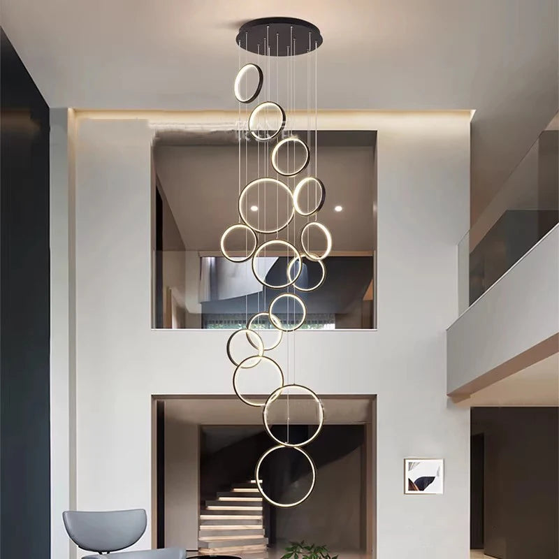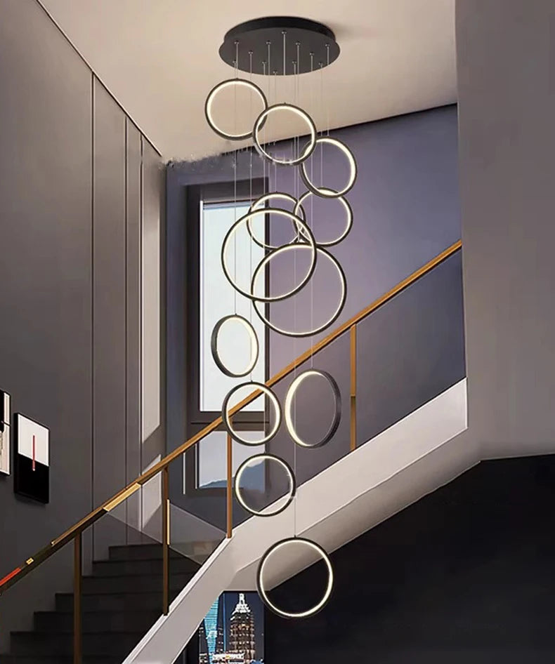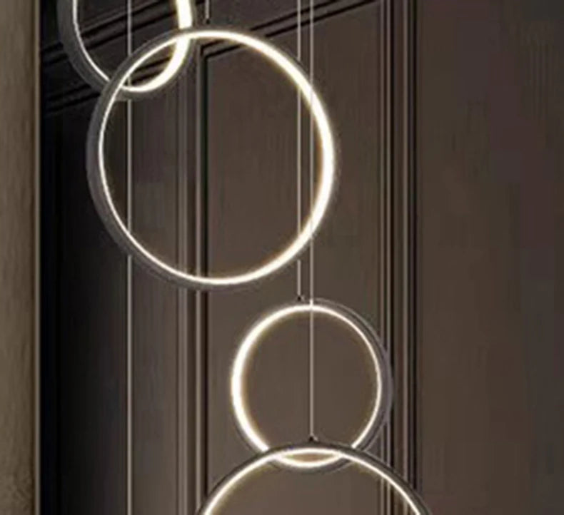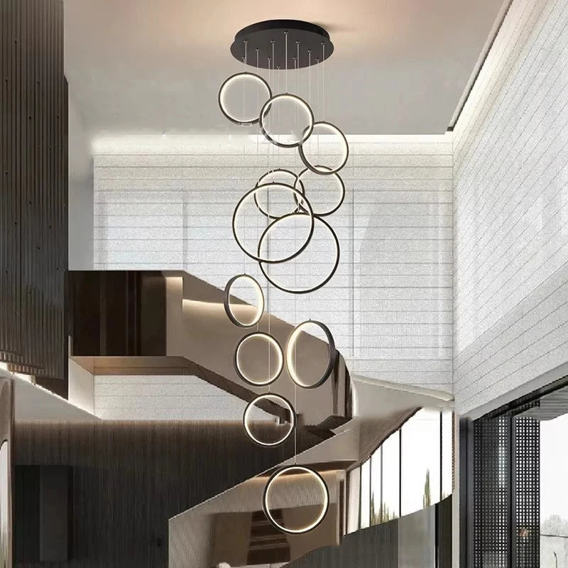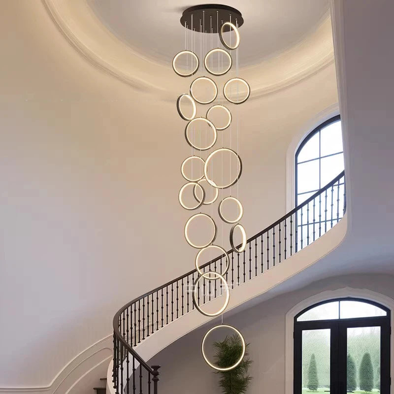 • ✔ Cascading LED ring design for modern architectural interiors