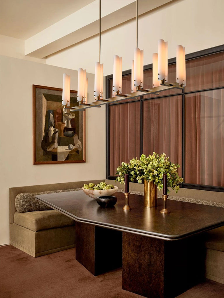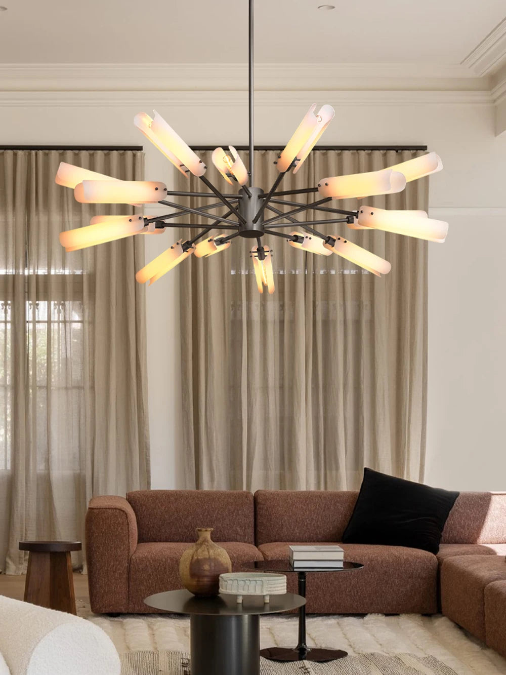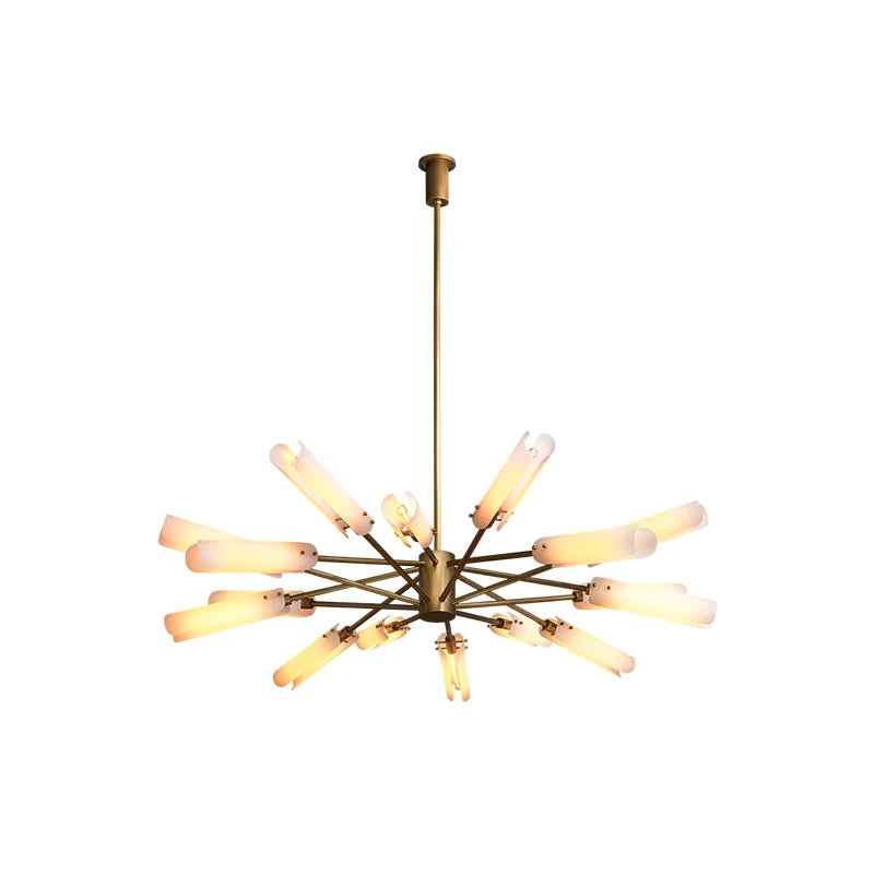 • ✔ Elegant polished copper and frosted glass chandelier design