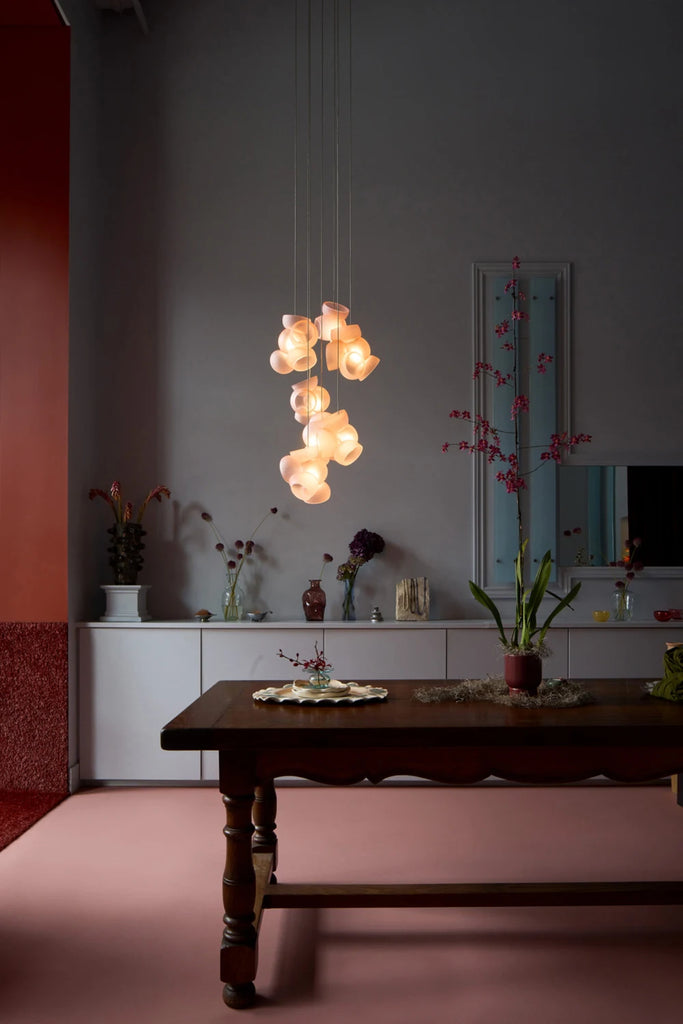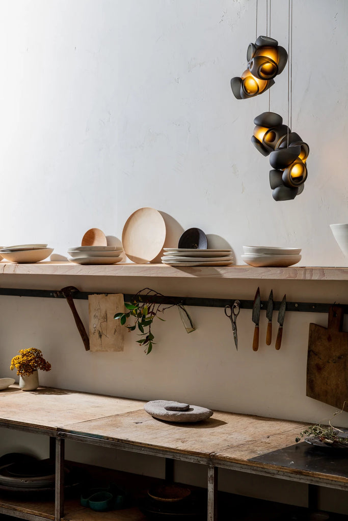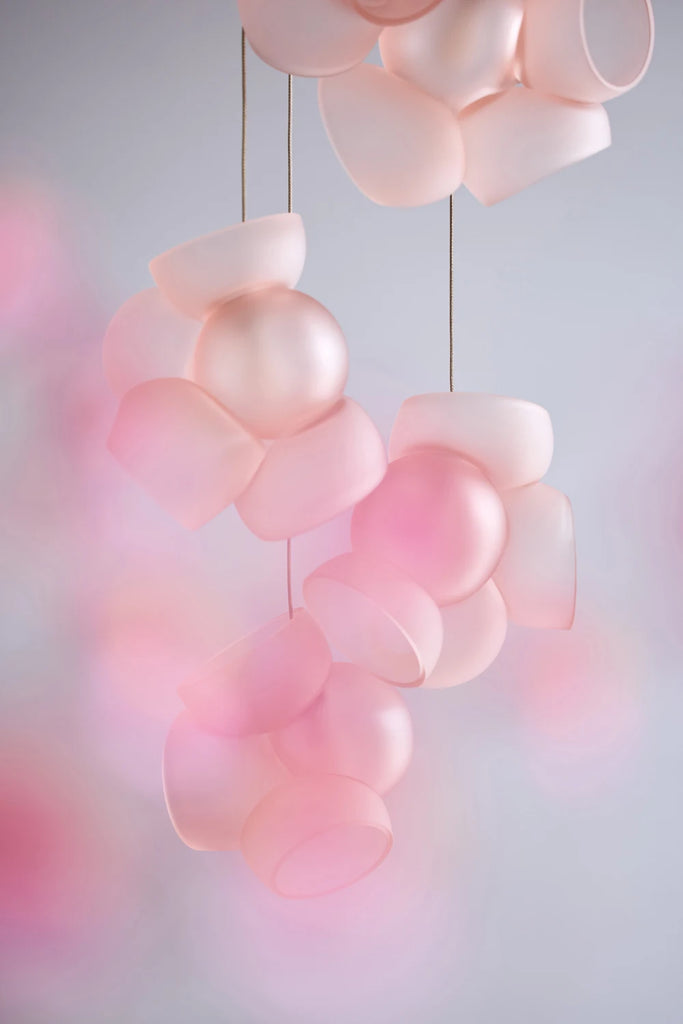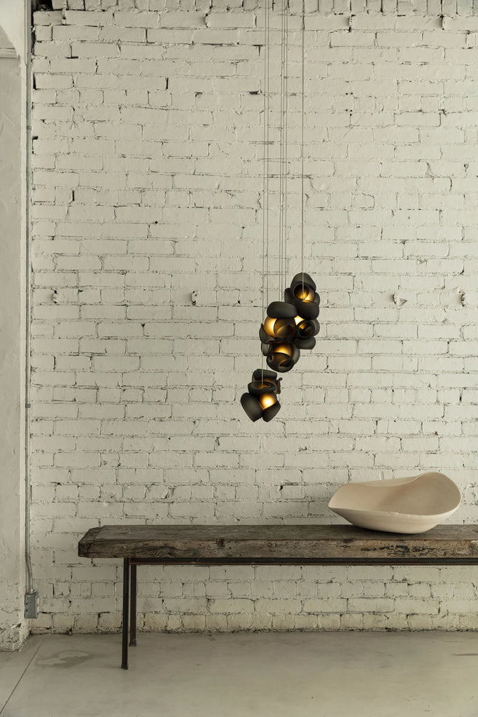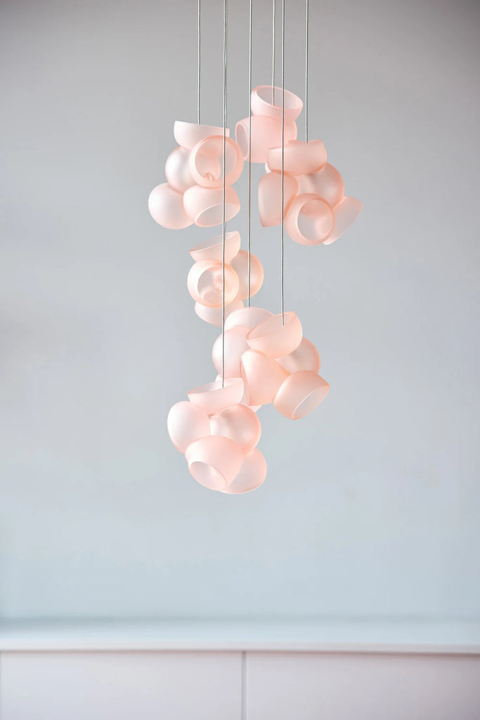 - The Koli Ebréa Pendant Light transforms ordinary lighting into art. Each glass form is hand-blown, resembling floating organic clusters that diffuse a warm, poetic glow. Available in multiple finishes — smoky, amber, white, or rose — Ebréa adds character to modern interiors, from dining spaces to galleries or staircases.