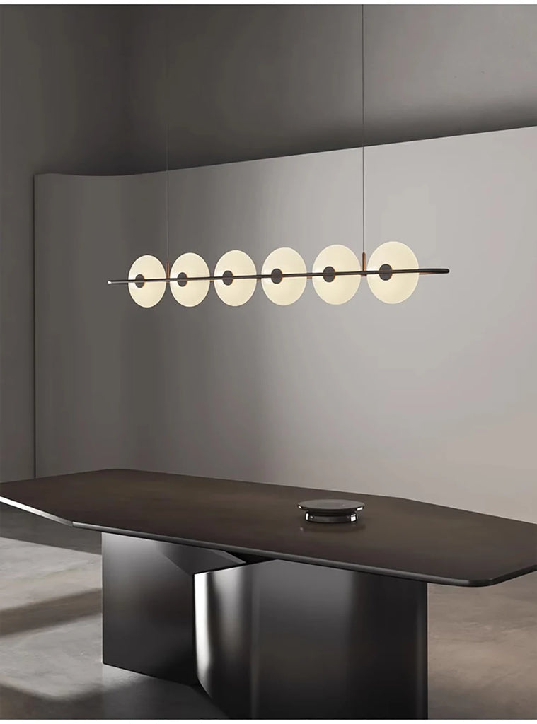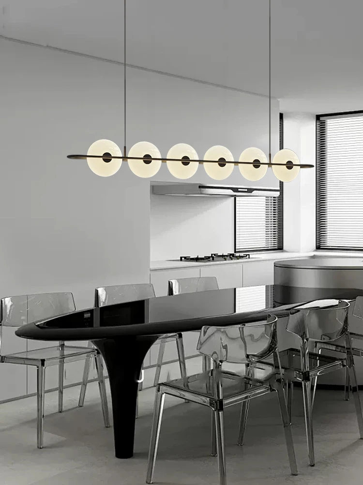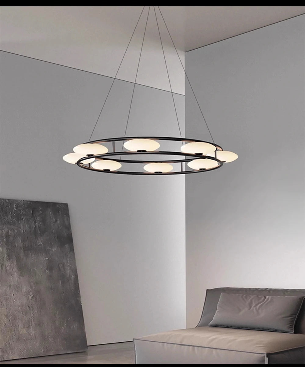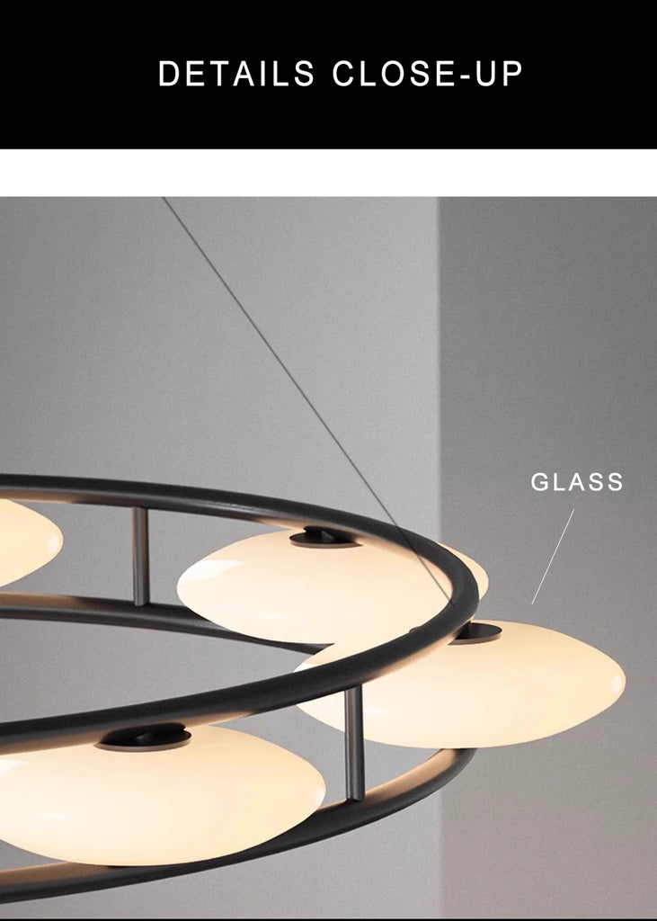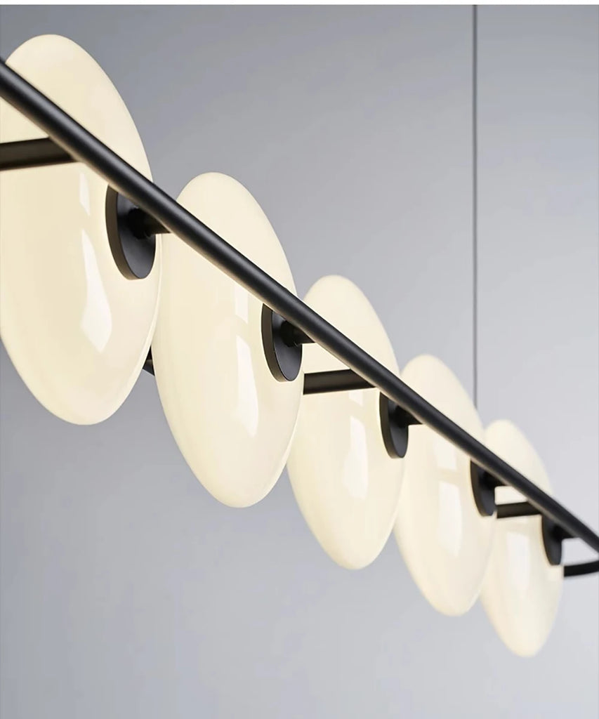- The Priv Onera Black & White Glass Chandelier redefines minimal elegance with sculptural glass discs and a sleek black frame. Its soft, diffused LED lighting creates a warm yet refined ambiance—ideal for modern kitchens, bars, galleries, and living spaces. With its balanced Art Deco geometry and contemporary restraint, Onera turns any interior into a statement of quiet sophistication.