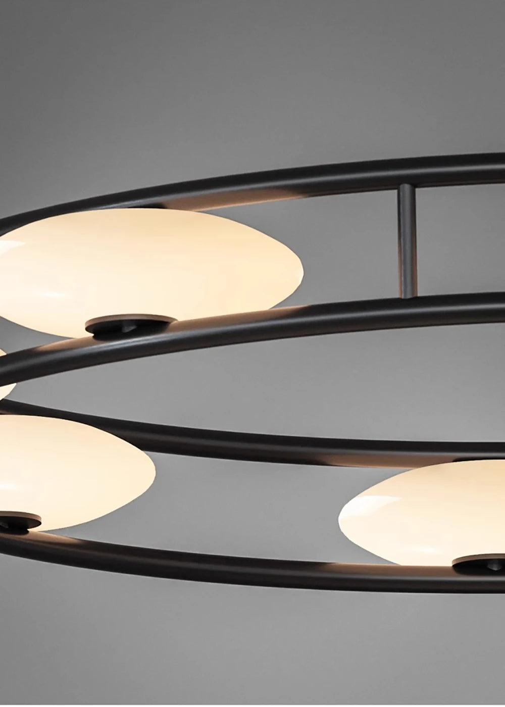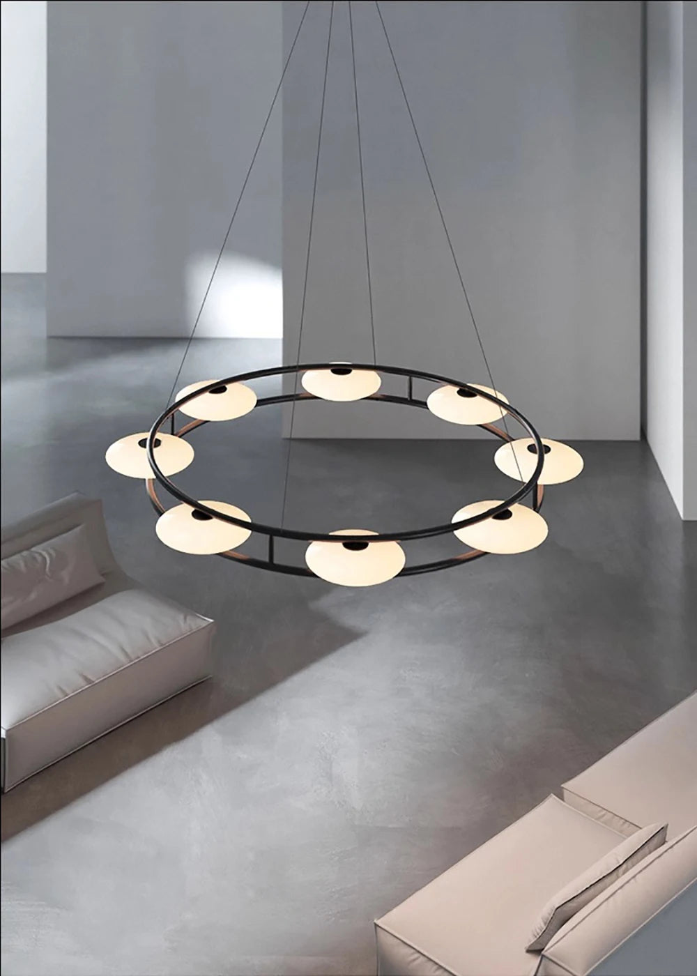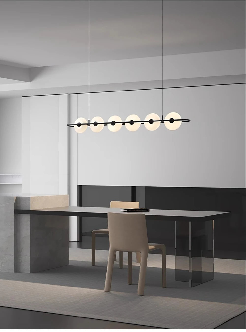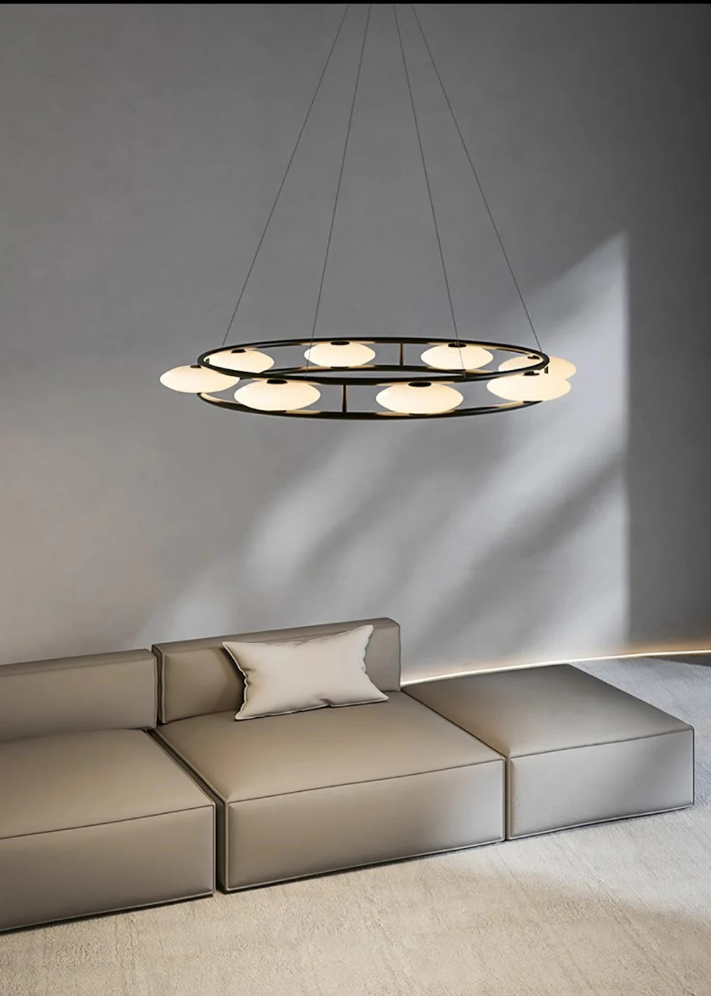 - The Priv Onera Black & White Glass Chandelier redefines minimal elegance with sculptural glass discs and a sleek black frame. Its soft, diffused LED lighting creates a warm yet refined ambiance—ideal for modern kitchens, bars, galleries, and living spaces. With its balanced Art Deco geometry and contemporary restraint, Onera turns any interior into a statement of quiet sophistication.