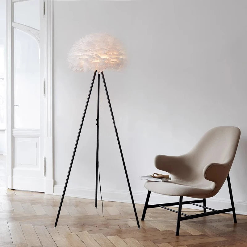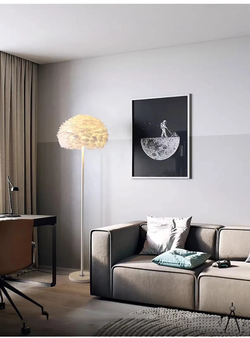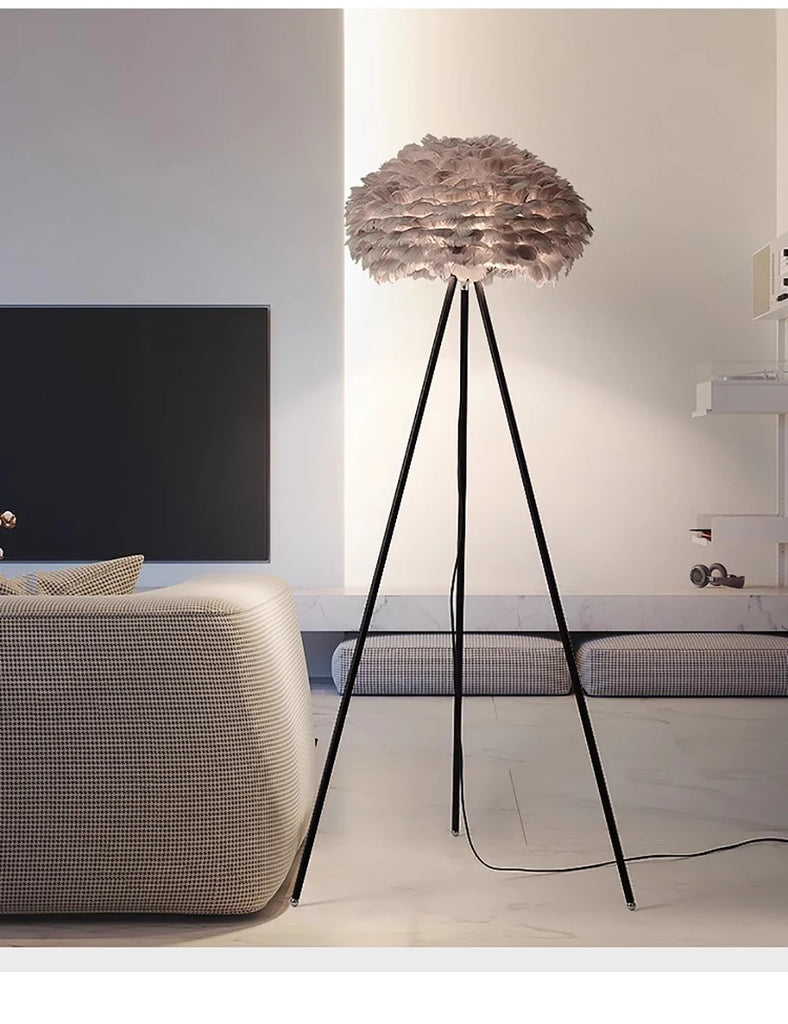 • The Priv Seraphia Feather Floor Lamp brings a touch of ethereal elegance to modern interiors. Featuring soft, angelic feather detailing atop a sleek iron frame, this contemporary floor lamp creates a warm and inviting atmosphere in foyers, lounges, bedrooms, and boutique spaces. Its gentle LED illumination offers multiple color modes, while dimmability and a stable self-contained base ensure both beauty and practicality. Seraphia stands as a sculptural statement piece — blending art, softness, and modern lighting design.