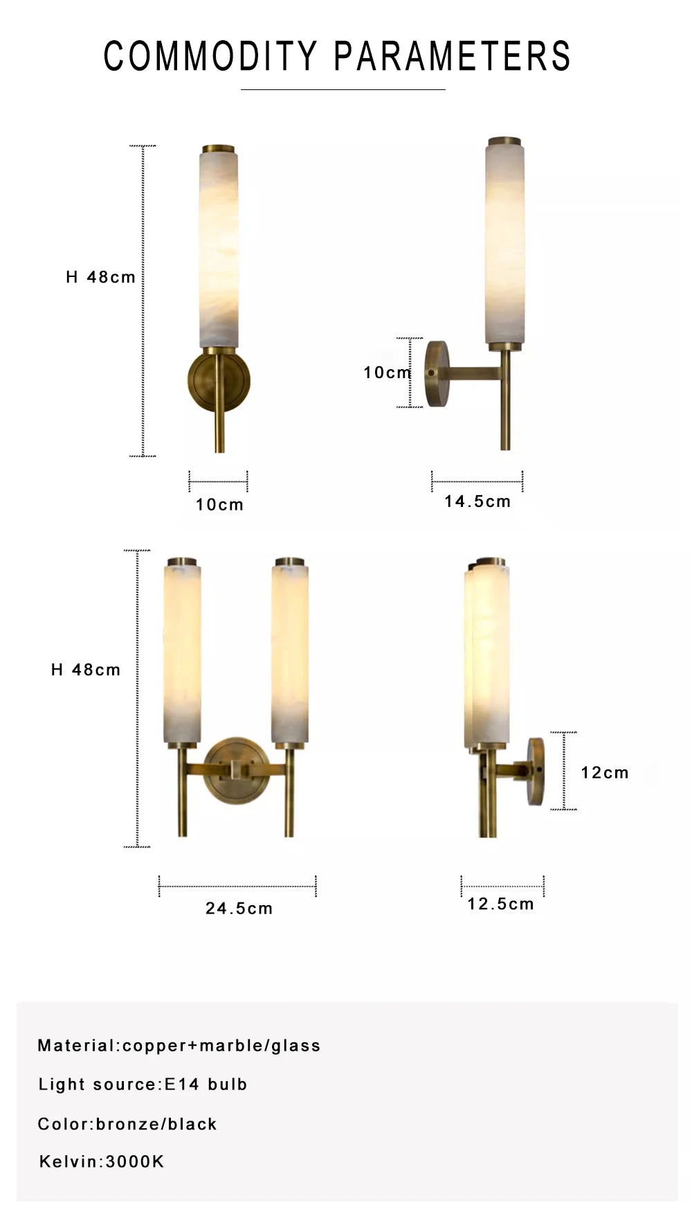 • The Priv Marvola Vintage Marble Wall Lamp brings refined classical charm with a post-modern twist. Crafted from solid copper and natural marble, this fixture delivers a warm, sophisticated glow that enhances hallways, dining rooms, bedrooms, bathrooms, and foyer spaces. Its dual-light design, premium materials, and remote-controlled dimmability make Marvola a luxurious statement piece suitable for both modern homes and boutique interiors. Designed for durability and elegance, it offers long-lasting LED performance and full customization options.