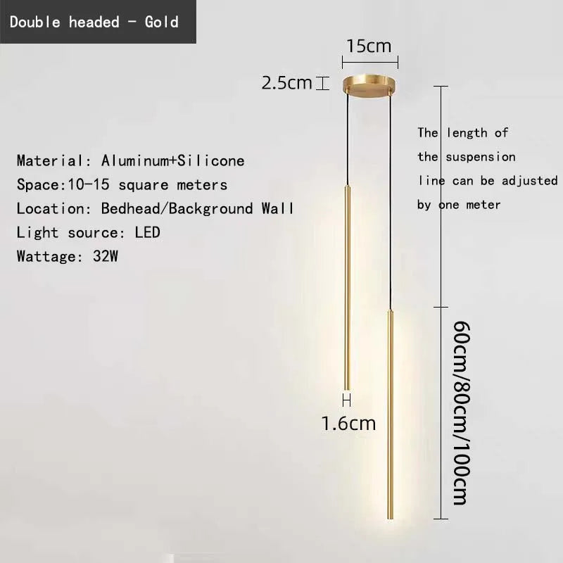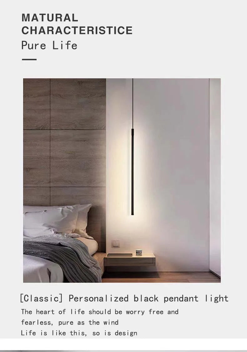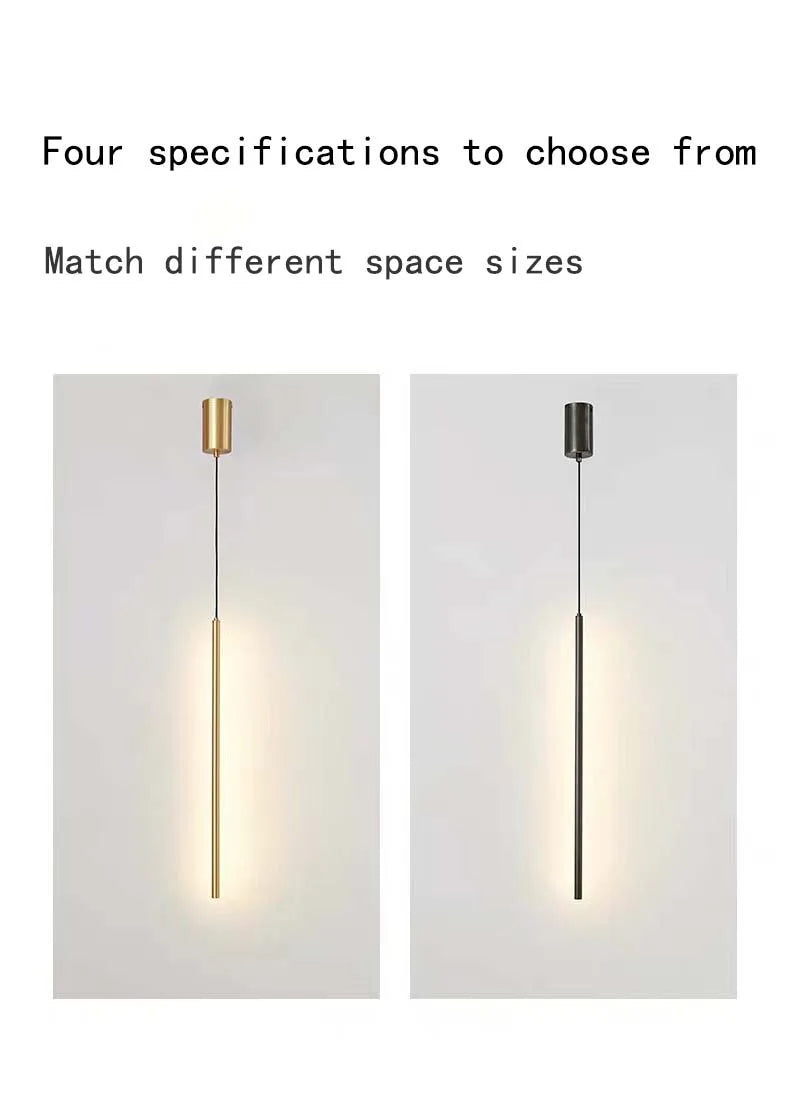 • The WL Linaro Minimalist SleekLine Pendant Light delivers a clean, modern silhouette crafted from premium aluminum with a sleek gilded finish. Its slim linear form offers focused illumination perfect for studies, bedrooms, and boutique hotel rooms. Available in black or gold, Linaro enhances interiors with understated elegance and contemporary refinement.