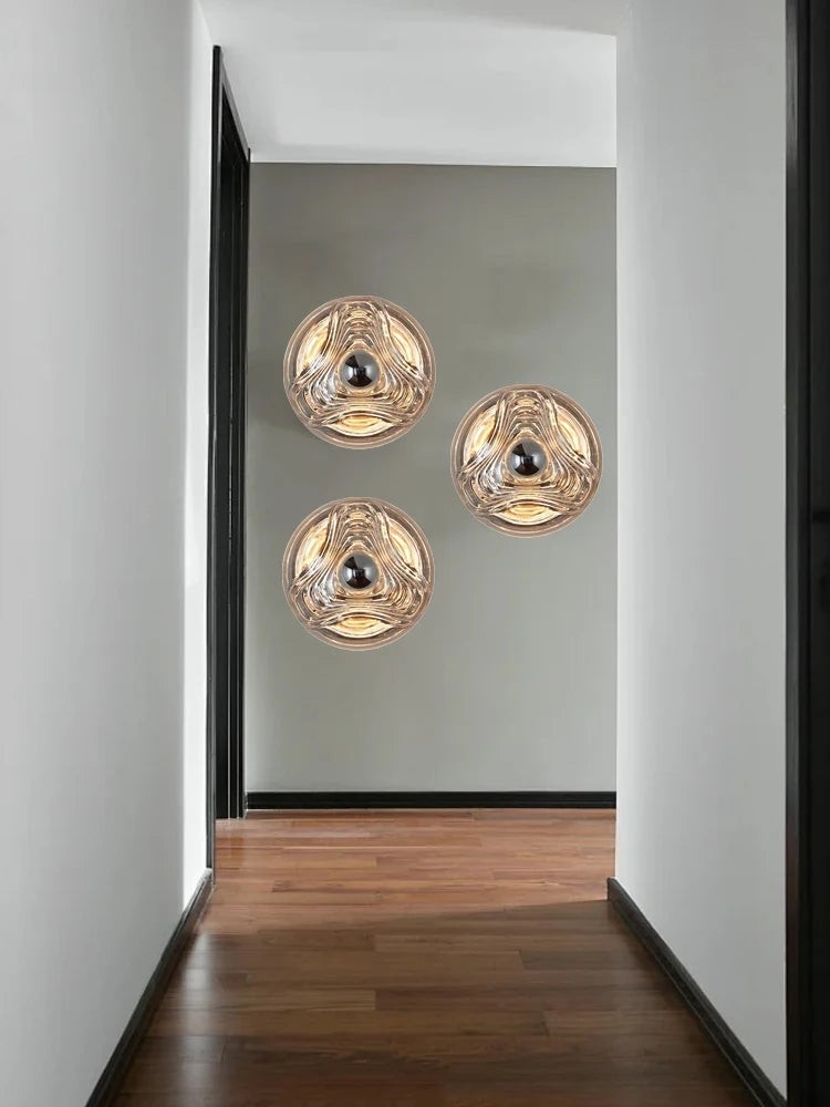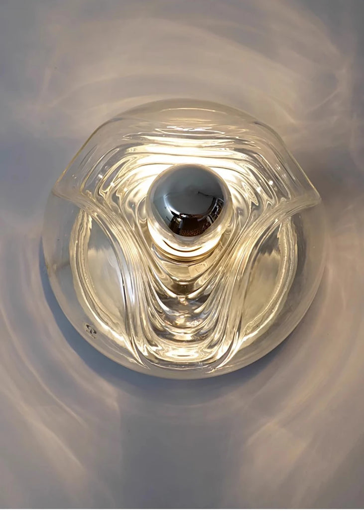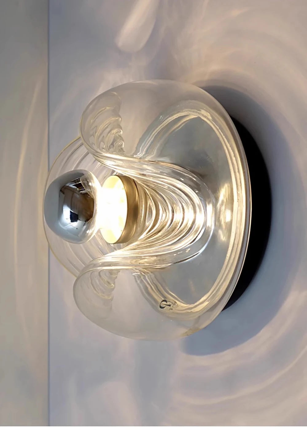 - The Priv Vorelle Artistic Glass Wall Lamp brings sculptural elegance to modern interiors, blending minimalist hardware with a beautifully crafted glass shade. Designed for kitchens, bedrooms, bathrooms, foyers, and study spaces, Vorelle emits a soft, balanced glow both upward and downward. With multiple light color modes, long LED lifespan, and a refined contemporary finish, this wall lamp elevates everyday spaces with effortless sophistication. Free replacement and customization options make it ideal for both residential and commercial projects.