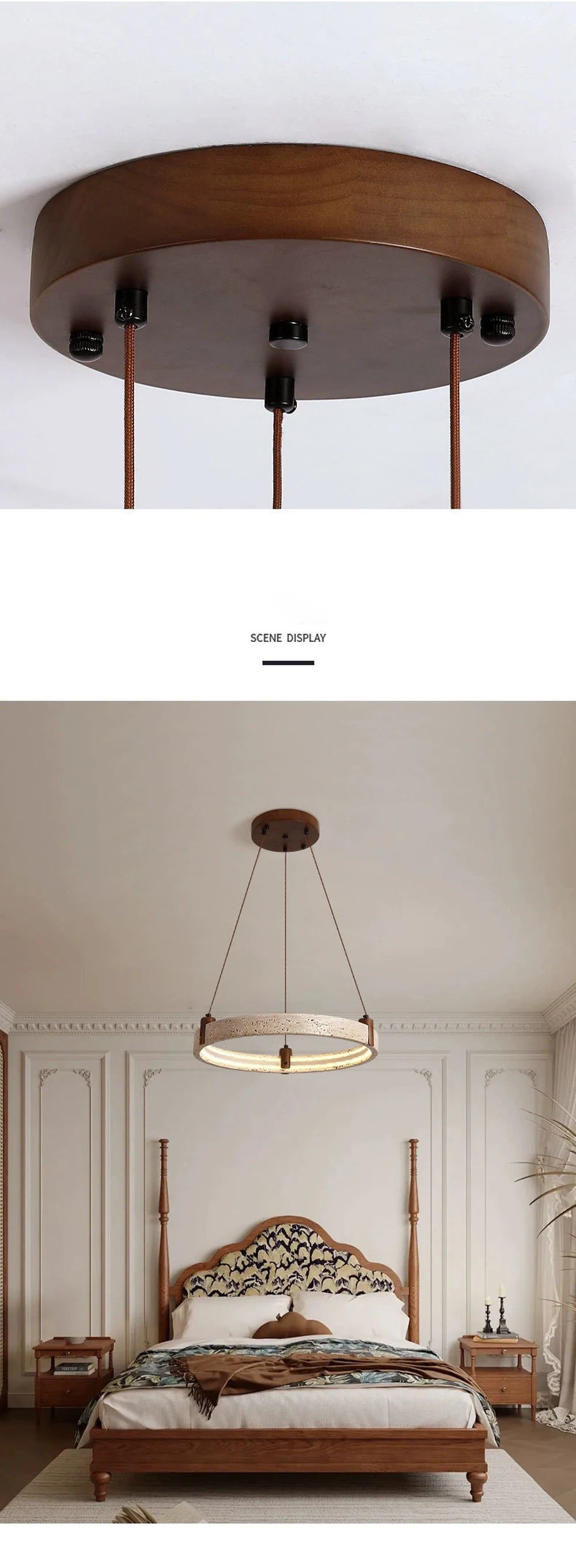 ✔ Elegant stone ring chandelier combining natural stone, wood, and iron materials