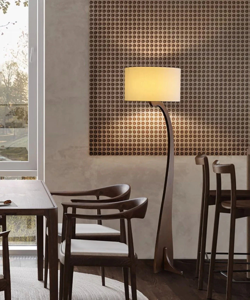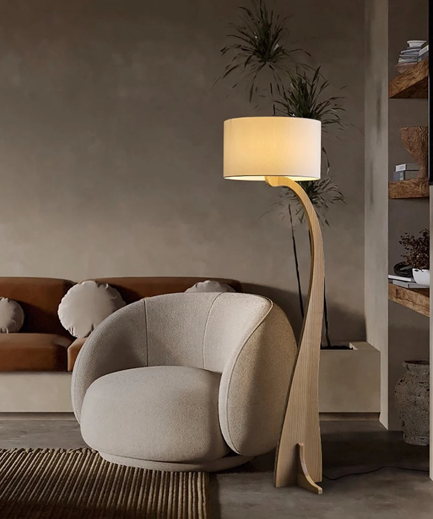 - The Priv Valdora Modern Wooden Floor Lamp brings organic warmth and contemporary elegance into any interior. Crafted from natural wood with a finely woven fabric lampshade, it delivers soft, ambient illumination that enriches foyers, bedrooms, living rooms, or reading corners. Its carved wooden body, combined with warm, natural, or white LED light options, creates a serene atmosphere suitable for minimalist, Scandinavian, or modern homes. With dimmable capabilities and a long-lasting LED source, Valdora blends functional comfort with timeless aesthetic appeal.